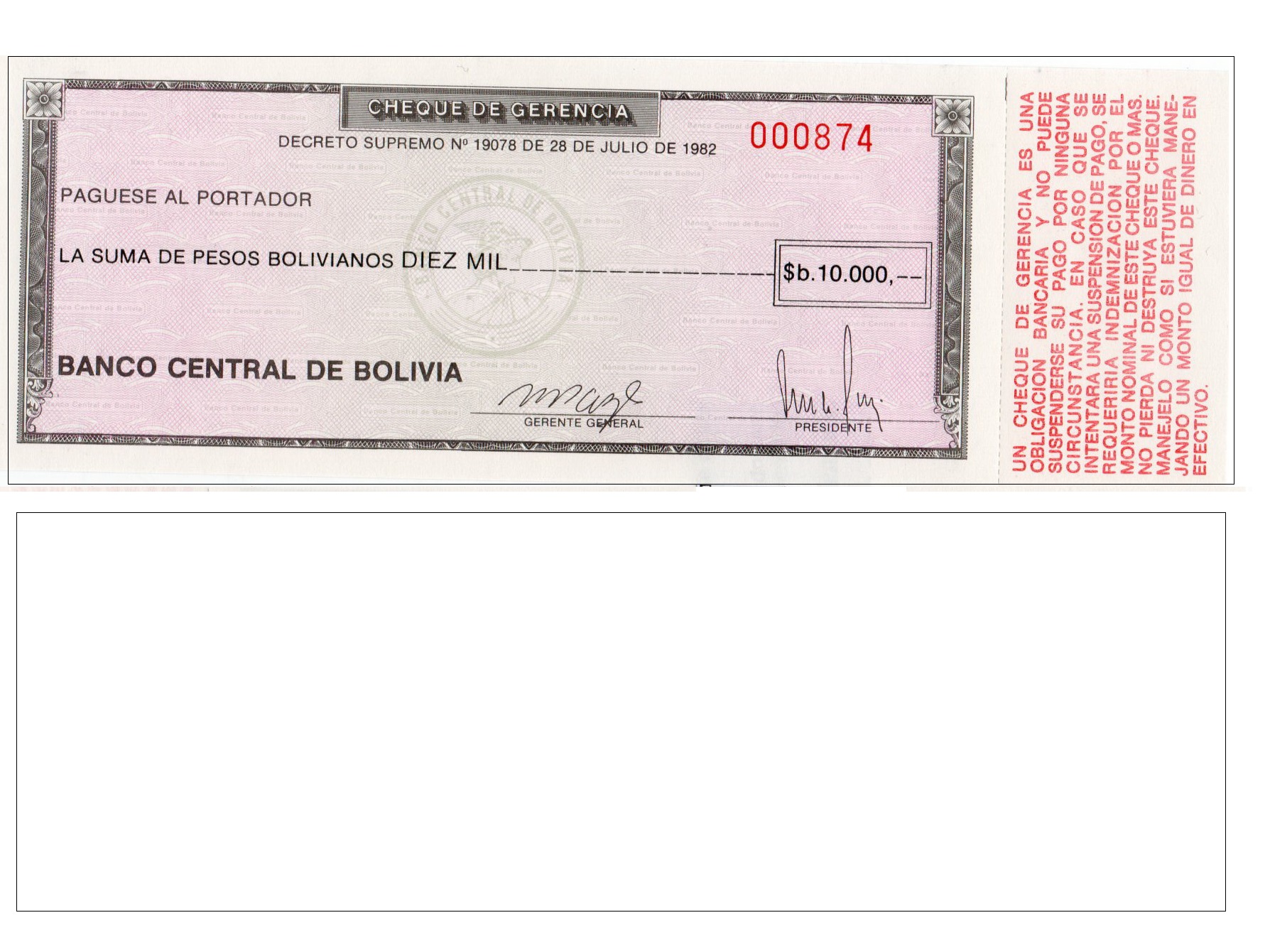 Denomination: 10.000 Pesos Bolivianos