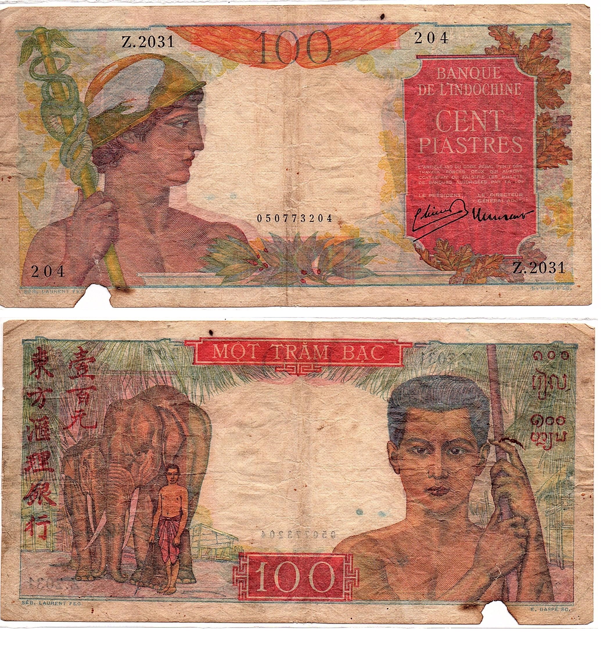 French Indochina #82b/VG2  100 Piastres / Yuan / Đồng / Kip / Ri